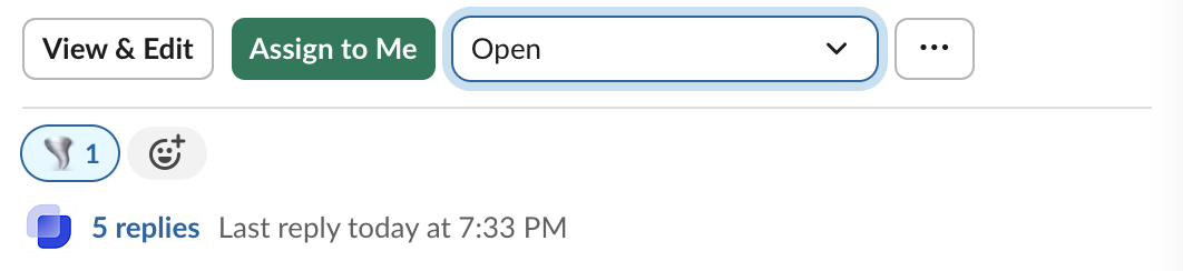 Example screenshot on adding the tornado reaction emoji to a ticket message in the Responder channel: