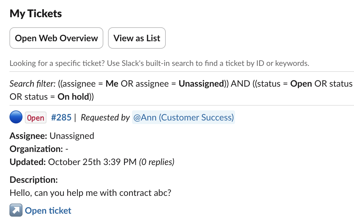 You can view all details on a ticket in the Web and in Slack.&#x20;